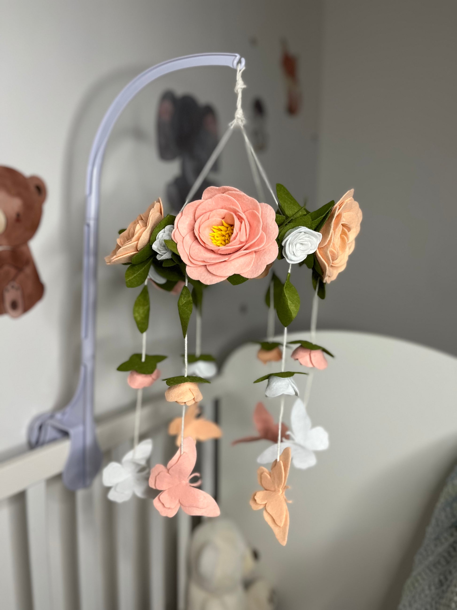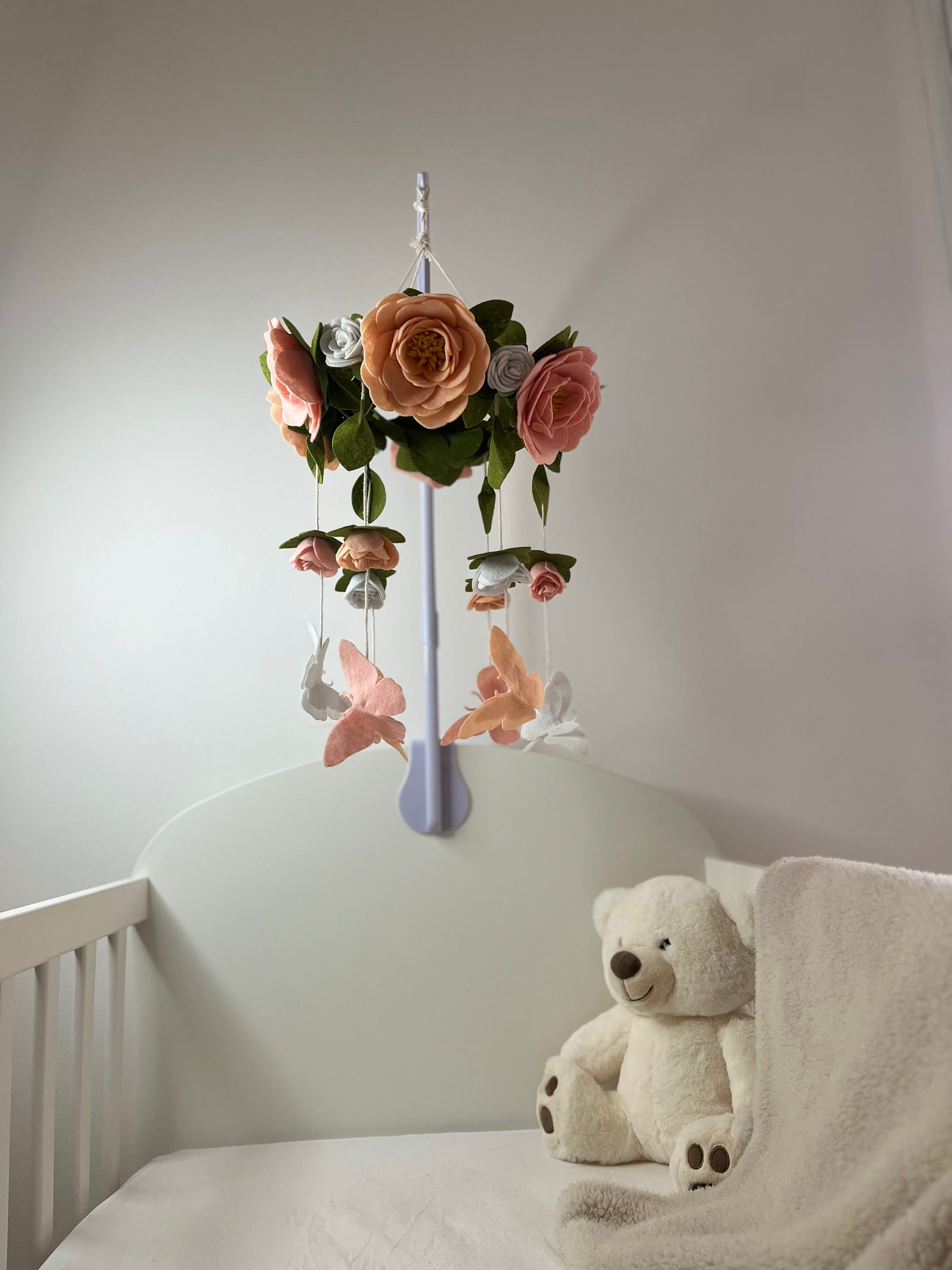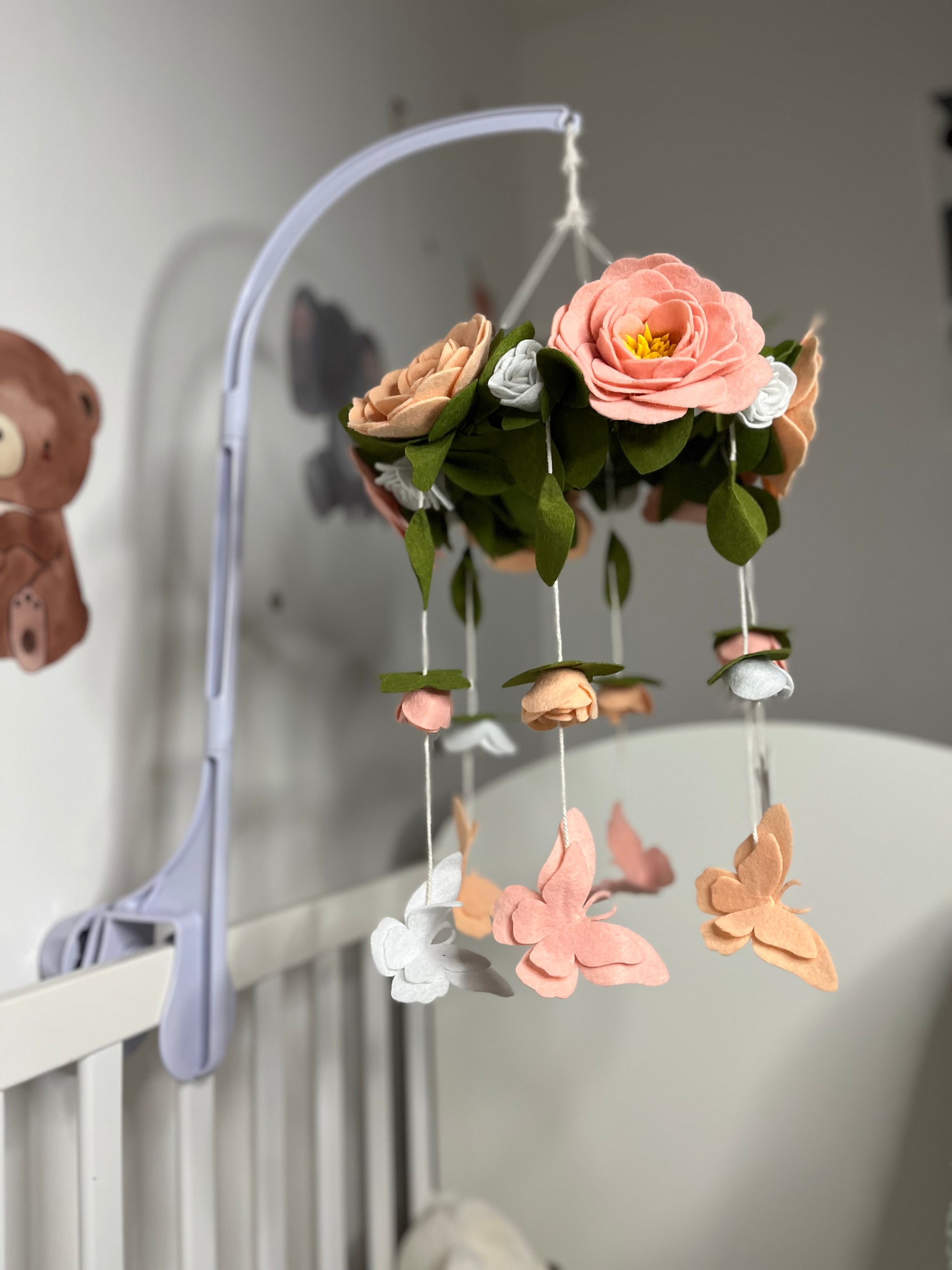 Offrez à votre bébé un cocon de douceur et de sérénité avec notre mobile fait main "Jardin d'Éden". Conçu pour éveiller en douceur les sens de votre enfant, ce mobile en feutrine aux teintes pastel apporte une touche florale et naturelle à la décoration de la chambre de bébé.