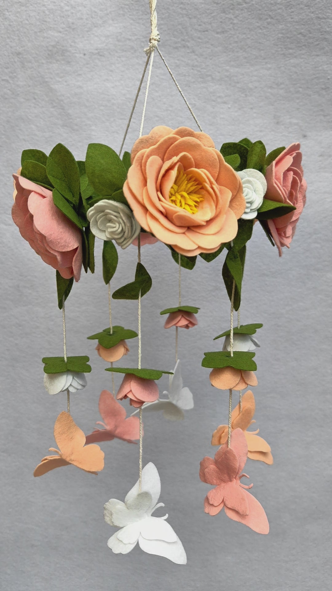 🌸 Design inspiré de la nature : Composé de délicates fleurs et papillons en feutrine, ce mobile suspendu rappelle la beauté d’un jardin fleuri.