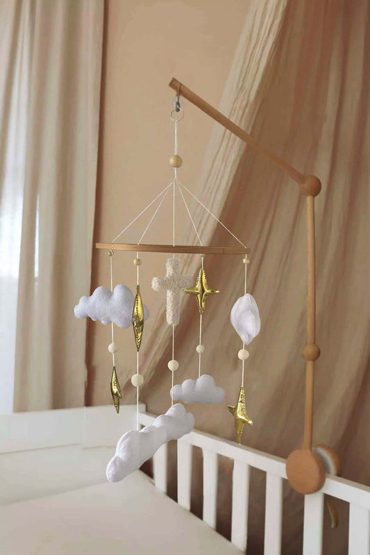 Grâce à des symboles chrétiens, ce mobile intègre la foi dans l'environnement de votre enfant